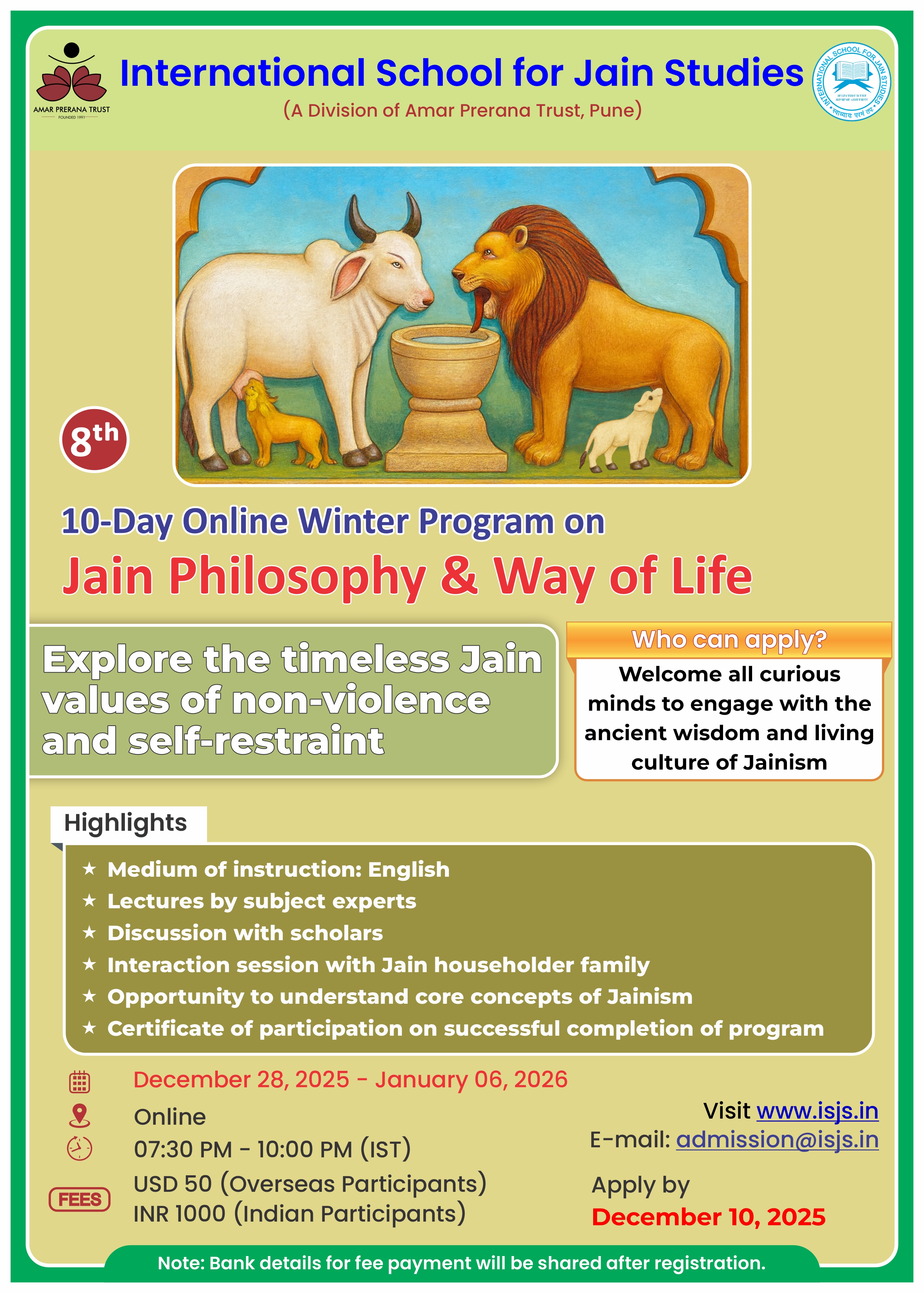 - The program also includes online interaction with Jain practitioners.