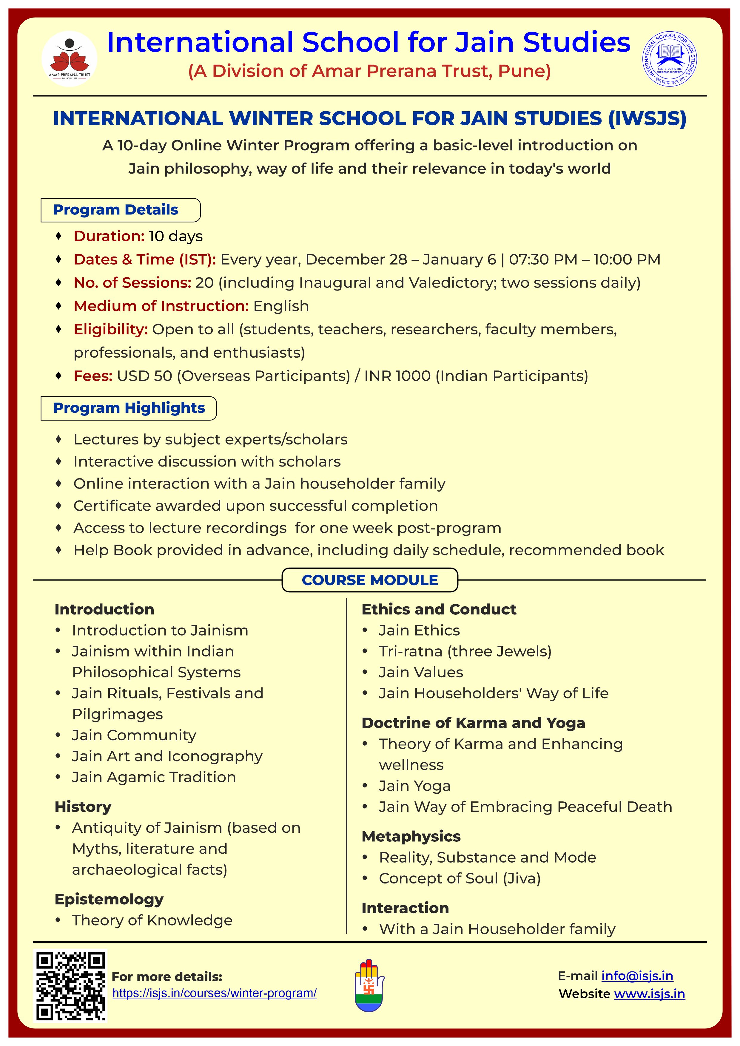 - This program is available to the persons registered with any university/college/institute as undergraduate or graduate students, Ph.D. candidates, professors and faculty members as well as to high school teachers, professionals, Inquisitives, and professional Jains.